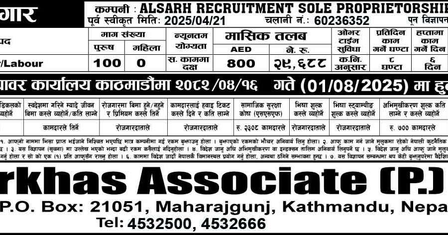 The recruitment company applies with the Department of labor Nepal for Authorization, The Department of labor will grant the permission on being satisfied with the credibility of the demand and attesting to the terms.